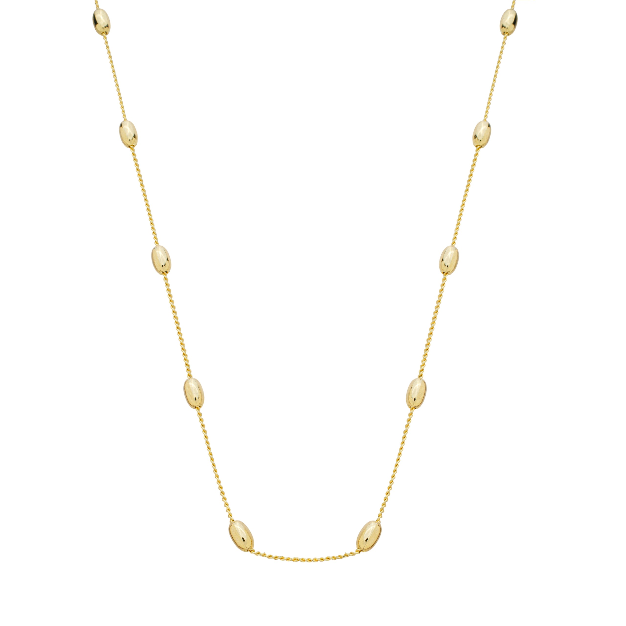 Esse Colar é a escolha perfeita para quem busca um visual elegante e versátil no dia a dia. Com corrente delicada intercalada por grãos polidos, ele traz um brilho suave que valoriza o colo de forma leve e feminina.