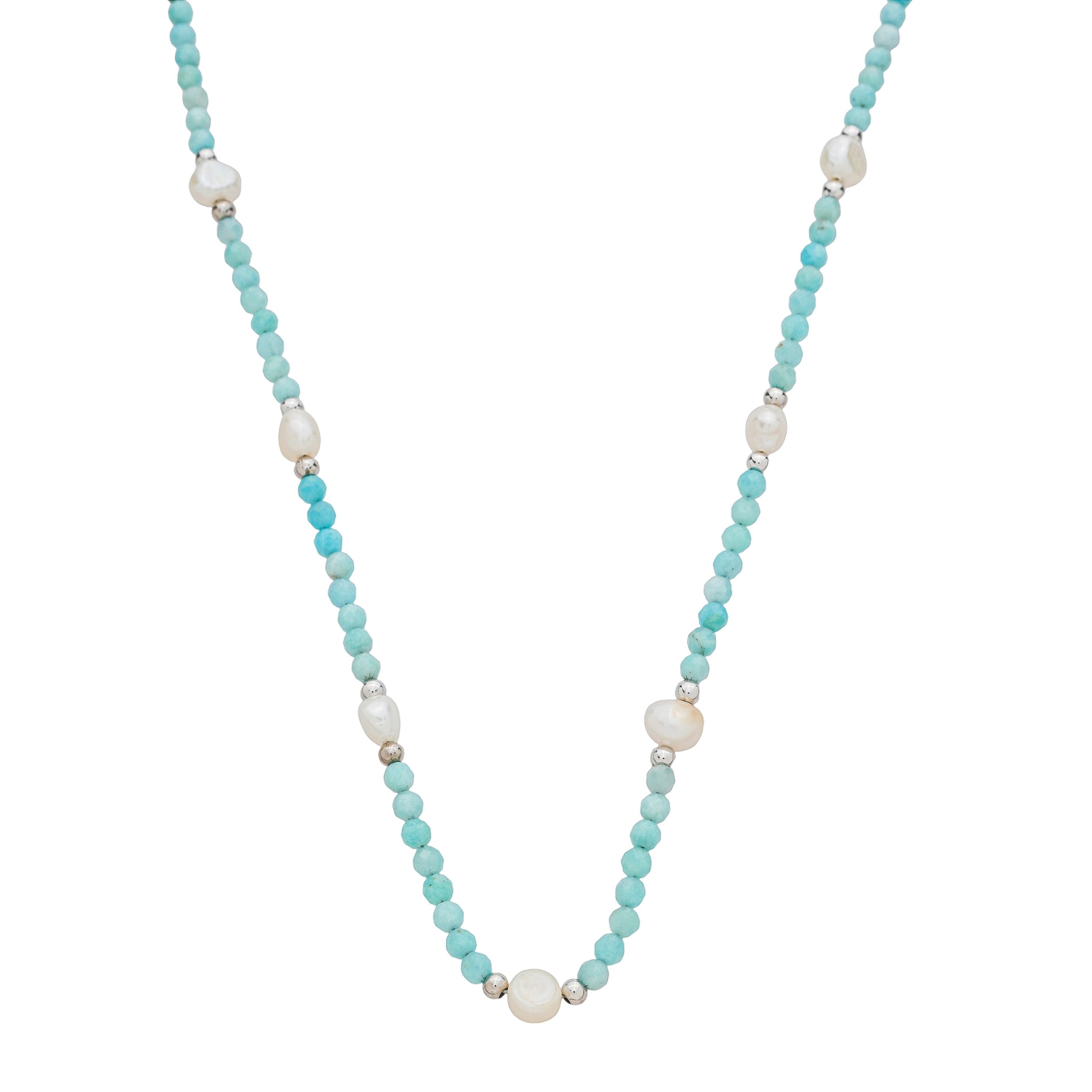 O Colar Pérola Água Doce com Amazonita combina a delicadeza das pérolas naturais com a energia suave e refrescante da amazonita. Suas pedras facetadas em tom verde-água trazem leveza e luminosidade, enquanto as pérolas adicionam um toque clássico e atemporal. O acabamento com esferas prateadas valoriza ainda mais esse mix orgânico e elegante.