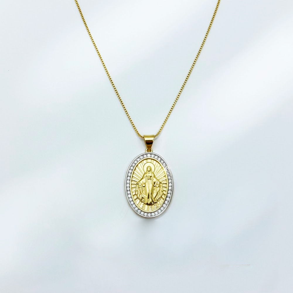 Colar Medalha Nossa Senhora das Graças com Zircônias no Banho de Ouro 18k