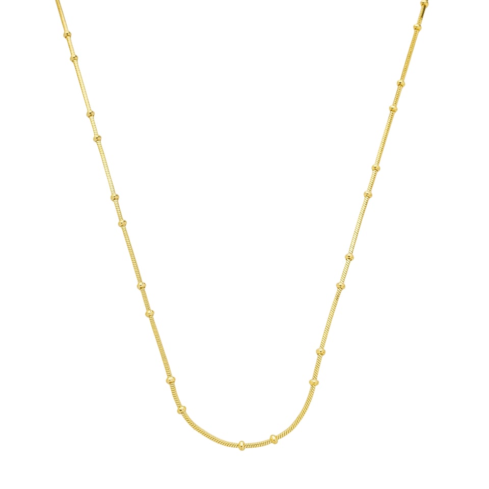 O Colar Micro Esferas Banho de Ouro 18k é uma peça clássica e versátil que combina com tudo. Seu design delicado, com pequenas esferas intercaladas ao longo da corrente, traz um brilho sutil e elegante. Ideal para ser usado sozinho em produções minimalistas ou em composições com outros colares, criando um mix moderno e sofisticado. Uma joia atemporal, perfeita para realçar a beleza com leveza e estilo.