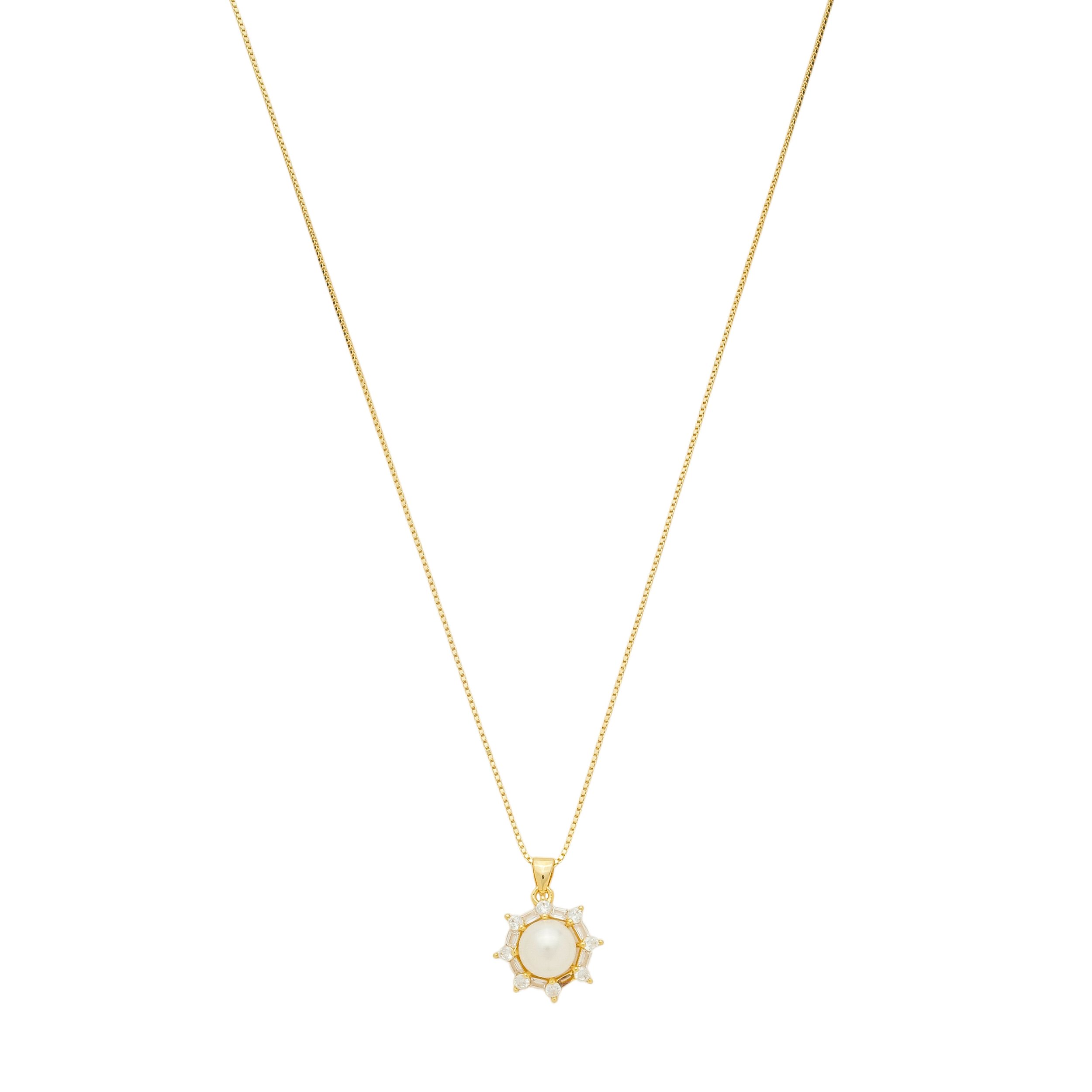 Colar Mira Pérola Entorno Zircônias Incolor Banho de Ouro 18k