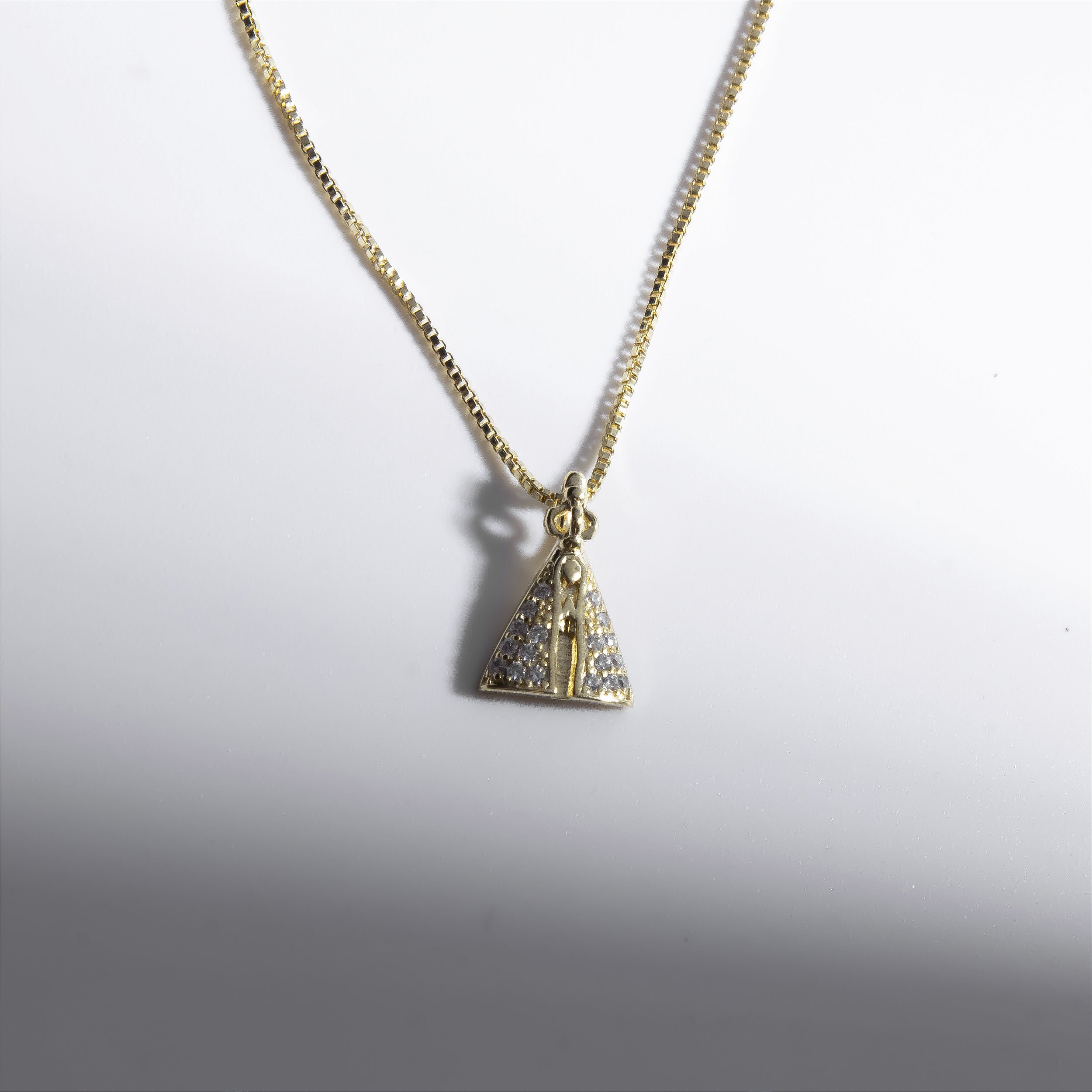 Colar Nossa Senhora Aparecida Pequena Zircônias Banho de Ouro 18k