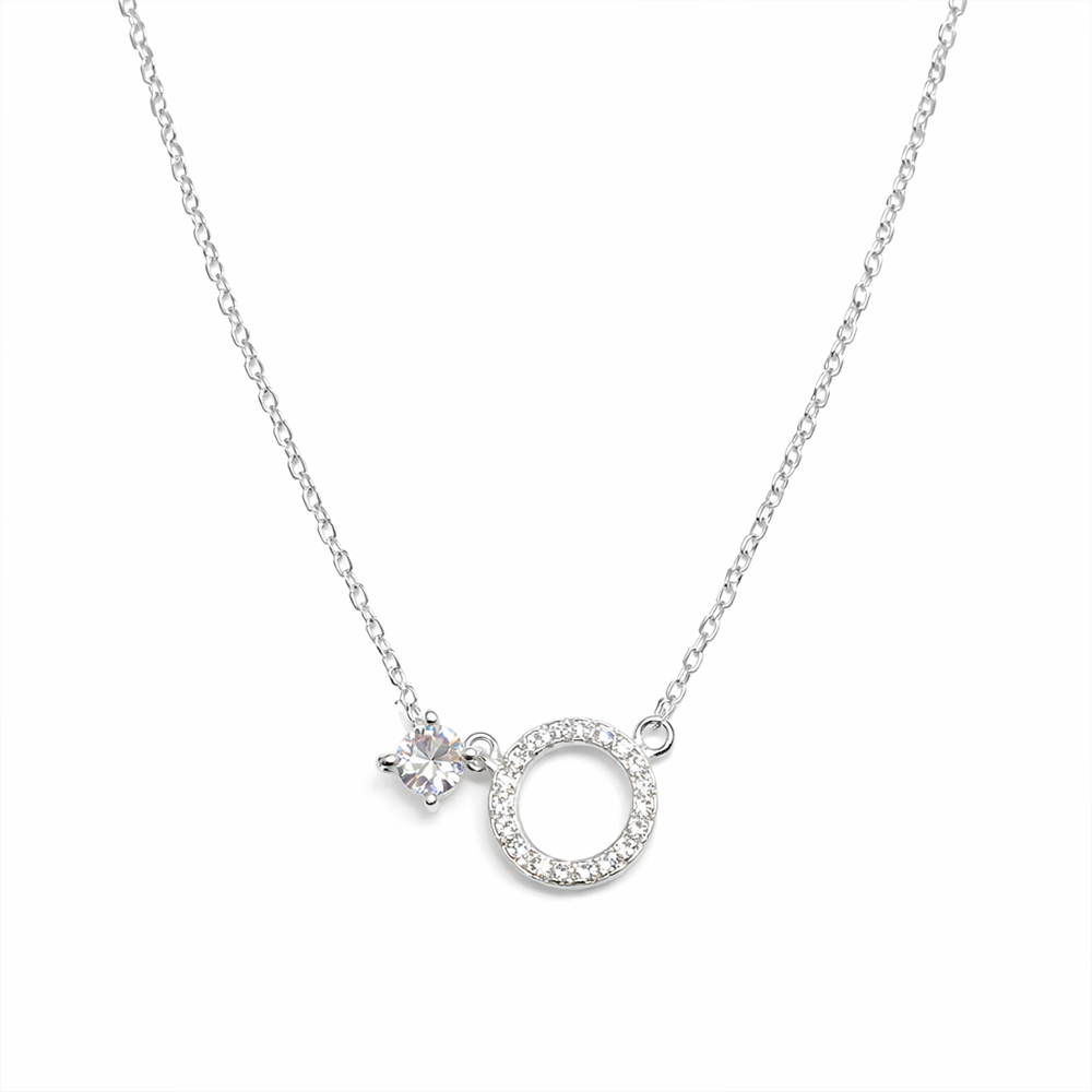 O Colar Círculo Vazado com Ponto de Luz em Prata 925 é uma peça delicada e cheia de charme. Seu design combina um círculo vazado cravejado com zircônias e um ponto de luz lateral, criando um visual moderno, leve e elegante.