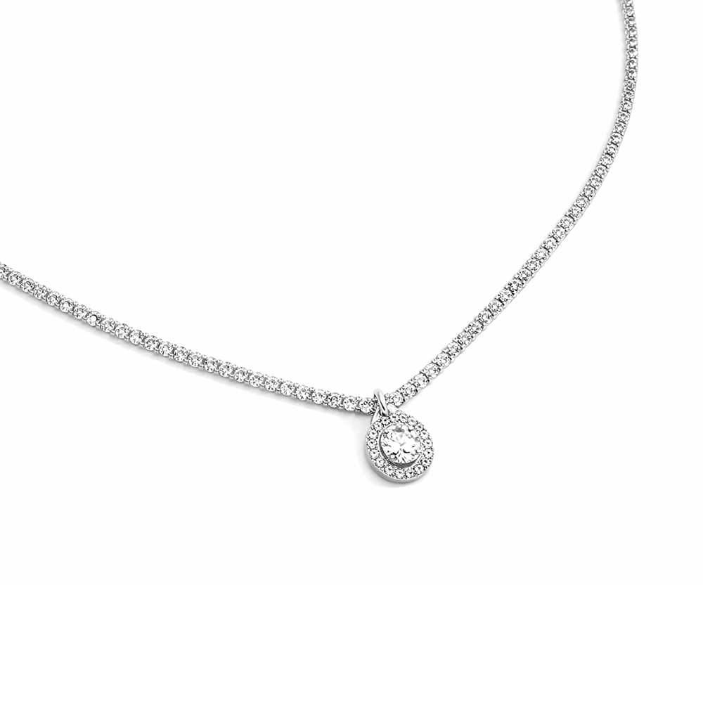 O Colar Riviera em Prata 925 com Pingente Gota Cravejado é uma joia de alto padrão, desenvolvida para quem busca sofisticação, brilho intenso e acabamento impecável. Confeccionado em Prata 925 legítima, o colar apresenta a clássica malha Riviera totalmente cravejada com zircônias de alta qualidade, que garantem luminosidade contínua e refinada ao redor do colo.