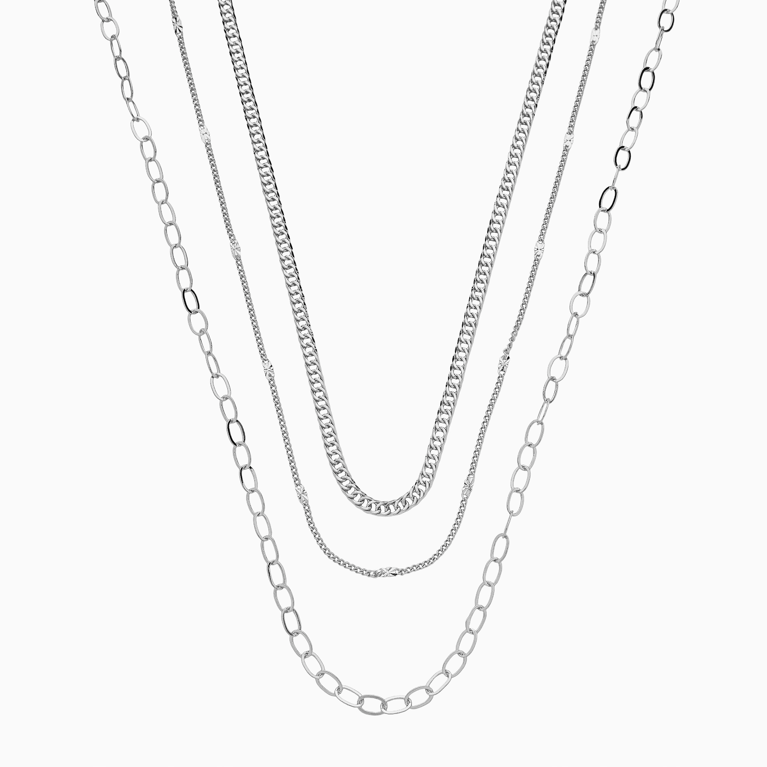 Colar Triplo Correntes Grumet Banho de Ródio Branco