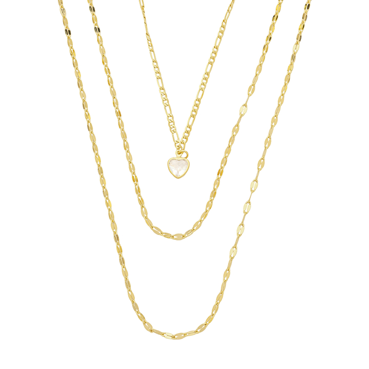 Esse colar triplo é a escolha perfeita para quem ama sofisticação com um toque romântico. Composto por três camadas de elos grumet, ele cria um efeito moderno e elegante no colo. O destaque fica por conta do ponto de luz em formato de coração, que traz brilho sutil e um significado especial a sua composição.