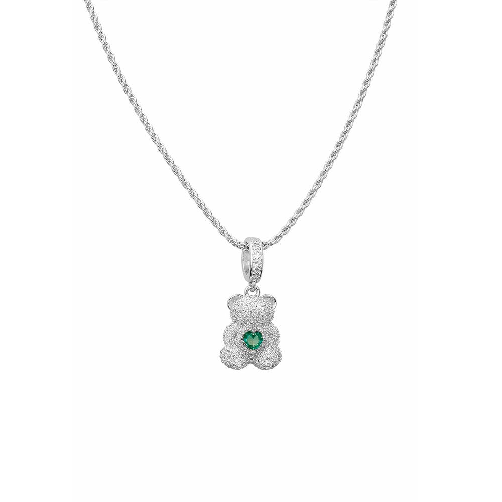 O destaque fica por conta do pingente de ursinho, cravejado com zircônias brancas que proporcionam um brilho sofisticado, e com um delicado coração verde central, símbolo de amor, proteção e ternura. Uma peça charmosa que transmite leveza e personalidade ao visual.