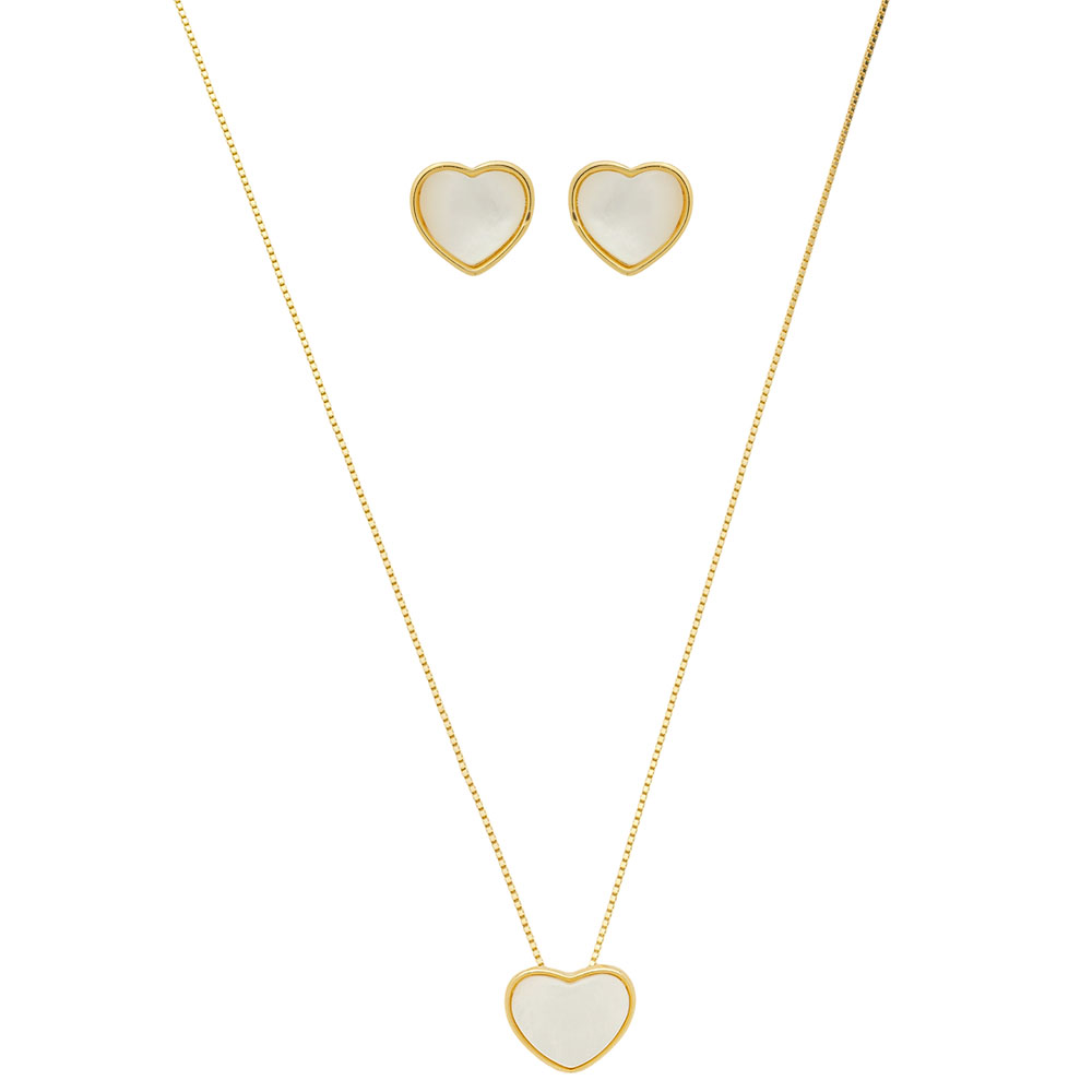 Conjunto Mira Coração Madrepérola Banho de Ouro 18k
