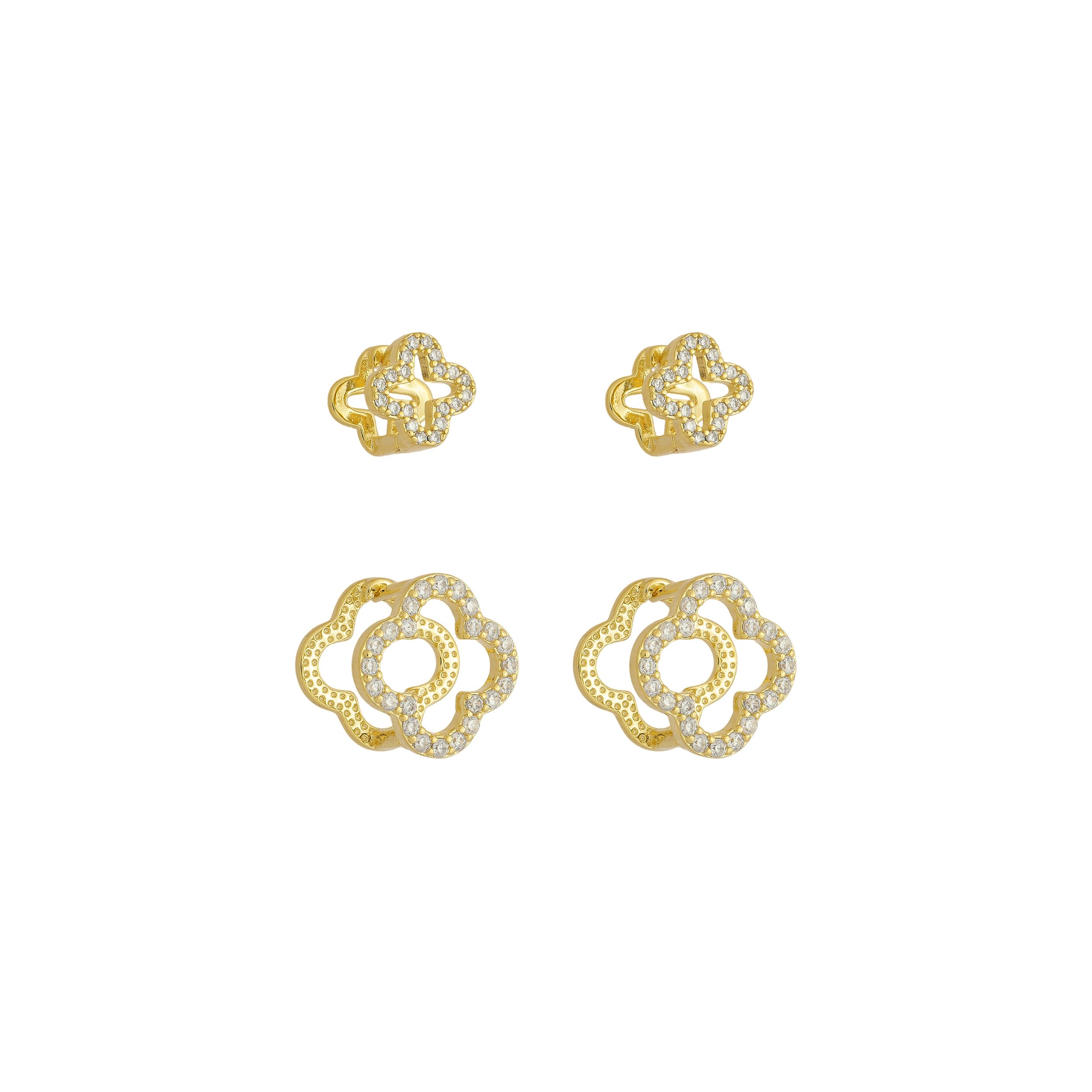 Duo Argola Trevo Vazado com Zircônia Incolor no Banho de Ouro 18k