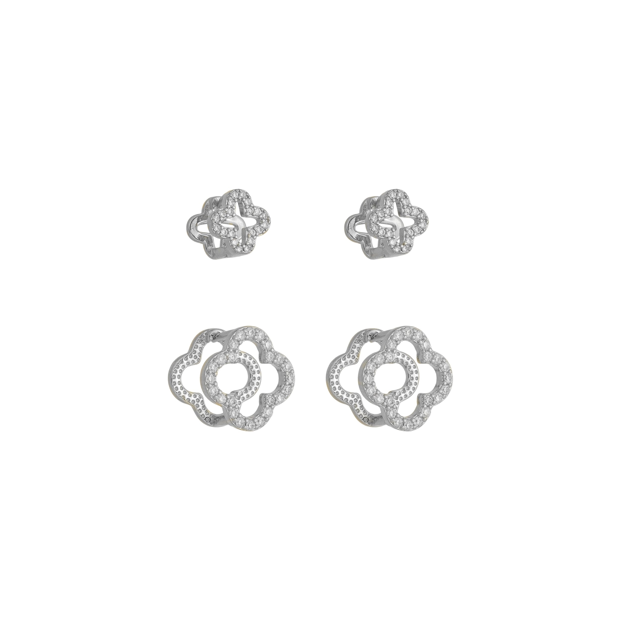 Duo Argola Trevo Vazado com Zircônia Incolor no Banho de Ródio