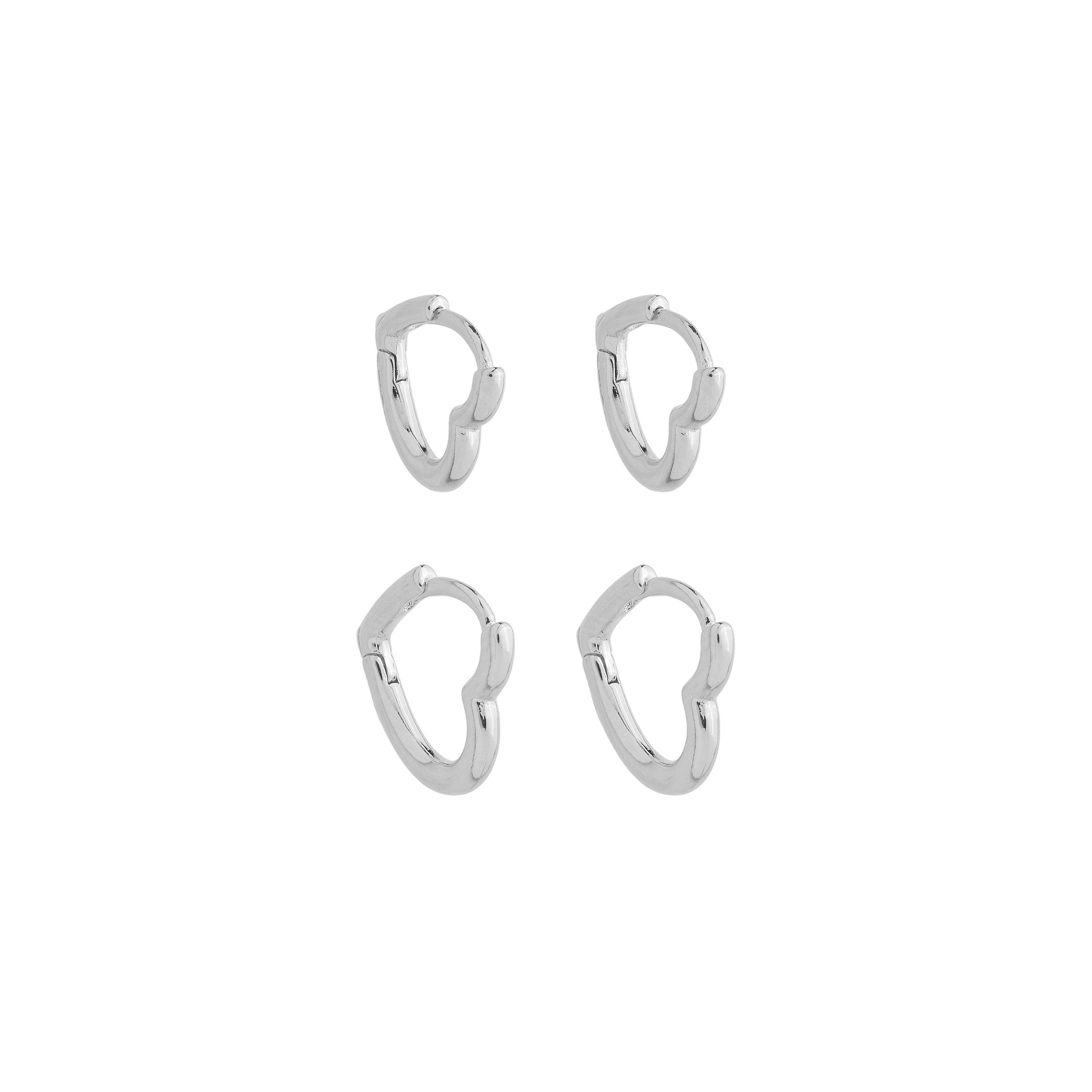 Duo Argolas Corações no Banho de Ródio Branco