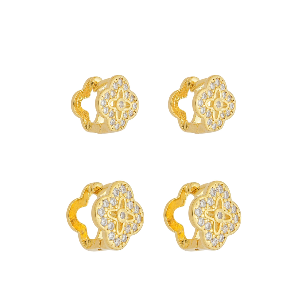 Duo Argolas Trevos Zircônias Incolor Banho de Ouro 18k