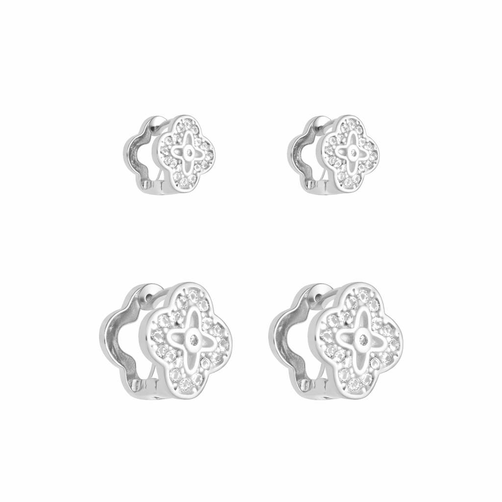 O Duo Argolas Trevos com Zircônias Incolor une delicadeza, brilho e simbolismo em um design encantador. Com banho de Ródio, as argolas apresentam detalhe frontal em formato de trevo, cravejado com zircônias incolores que iluminam a peça com sofisticação. Um acessório elegante e atemporal, perfeito para quem busca charme, significado e versatilidade no dia a dia ou em ocasiões especiais.