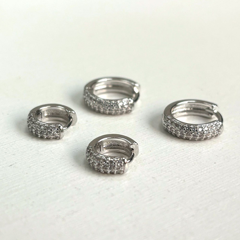 Duo de argolas cravejadas com zircônias brilhantes, perfeitas para criar mix e combinar entre si. Oferecem um toque sofisticado e versátil, ideal para adicionar brilho e elegância ao seu visual.