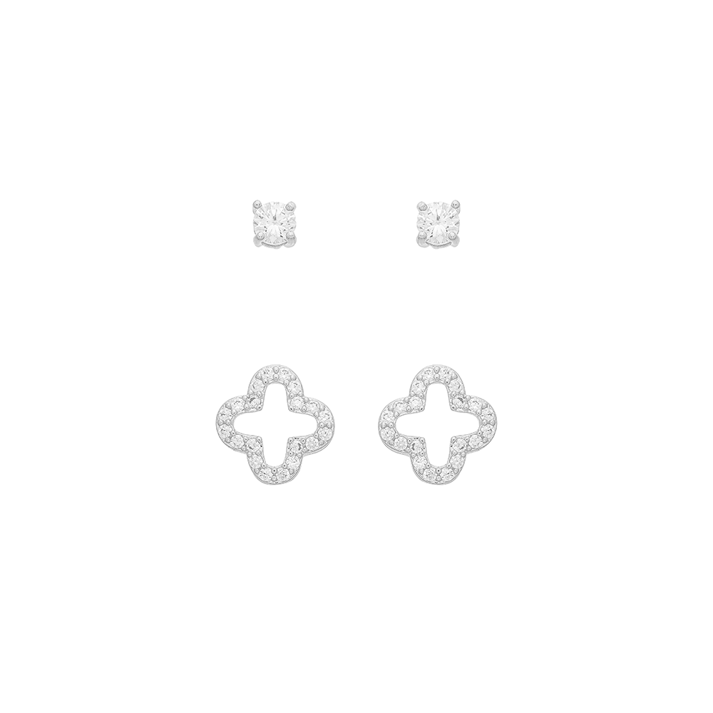 Duo de Brincos Trevo e Ponto de Luz Banho de Ródio Branco