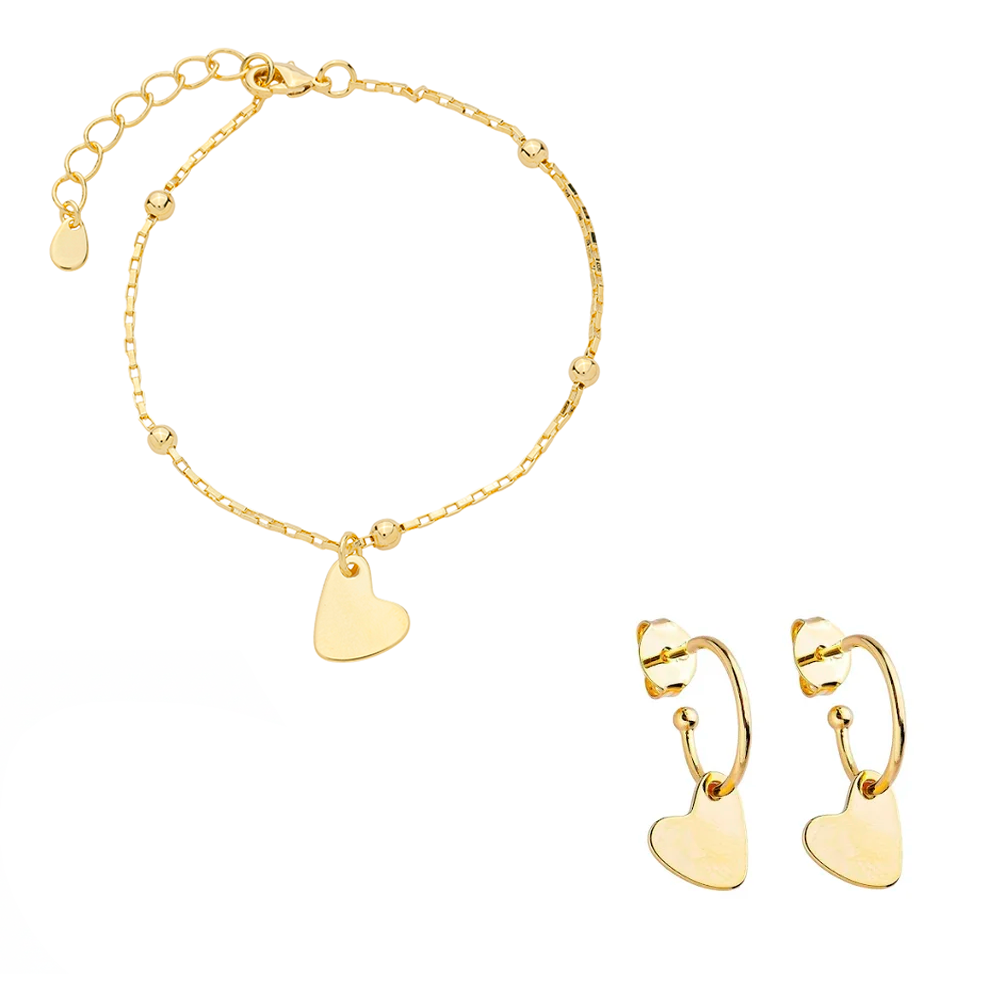 O Kit foi criado para mulheres que amam acessórios delicados, românticos e cheios de significado. Com banho de ouro 18k e acabamento polido, este conjunto traz o charme atemporal do pingente coração, símbolo de amor e boas energias, em duas peças que combinam entre si de forma impecável.