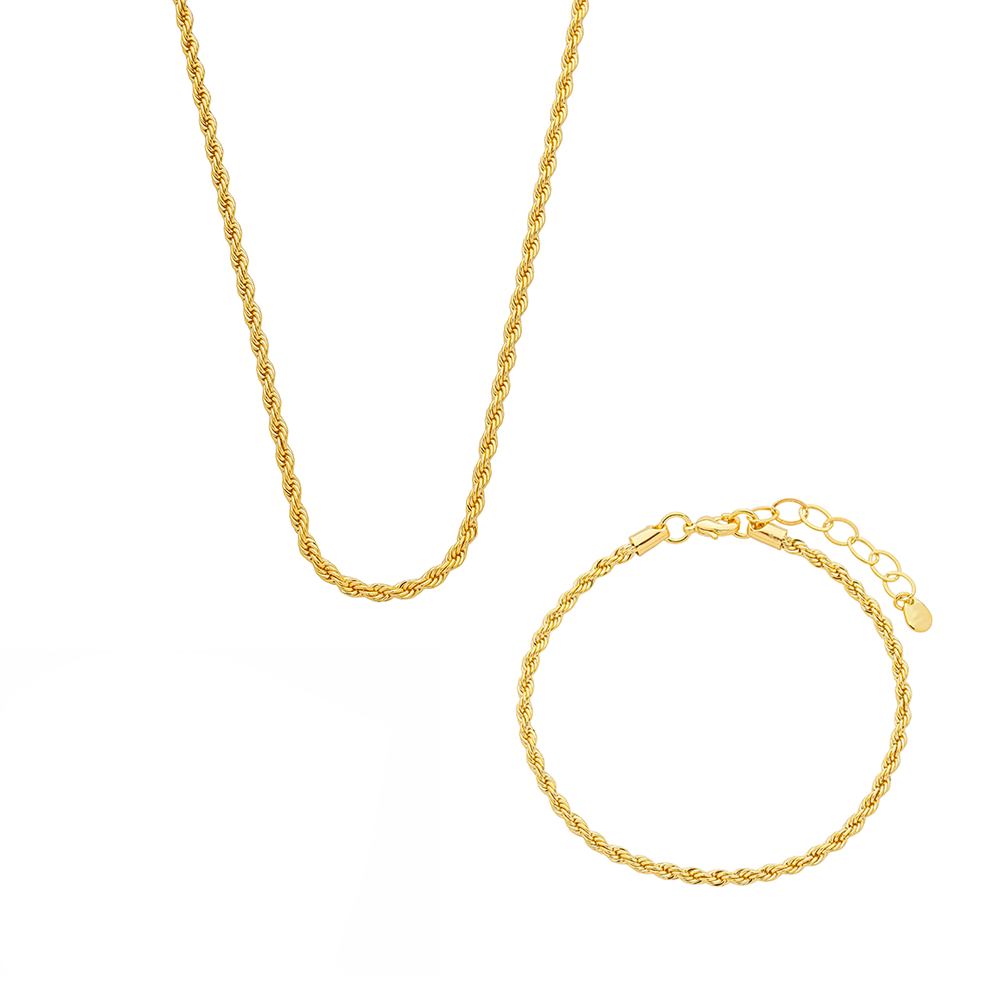 Kit Colar + Pulseira Cordão Baiano Banho de Ouro 18k