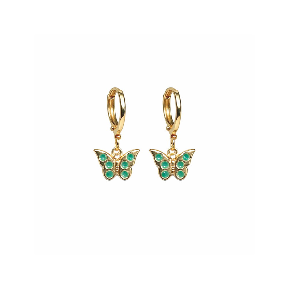 Mini Argola Infantil Borboleta Esmaltado Verde Banho de Ouro 18k
