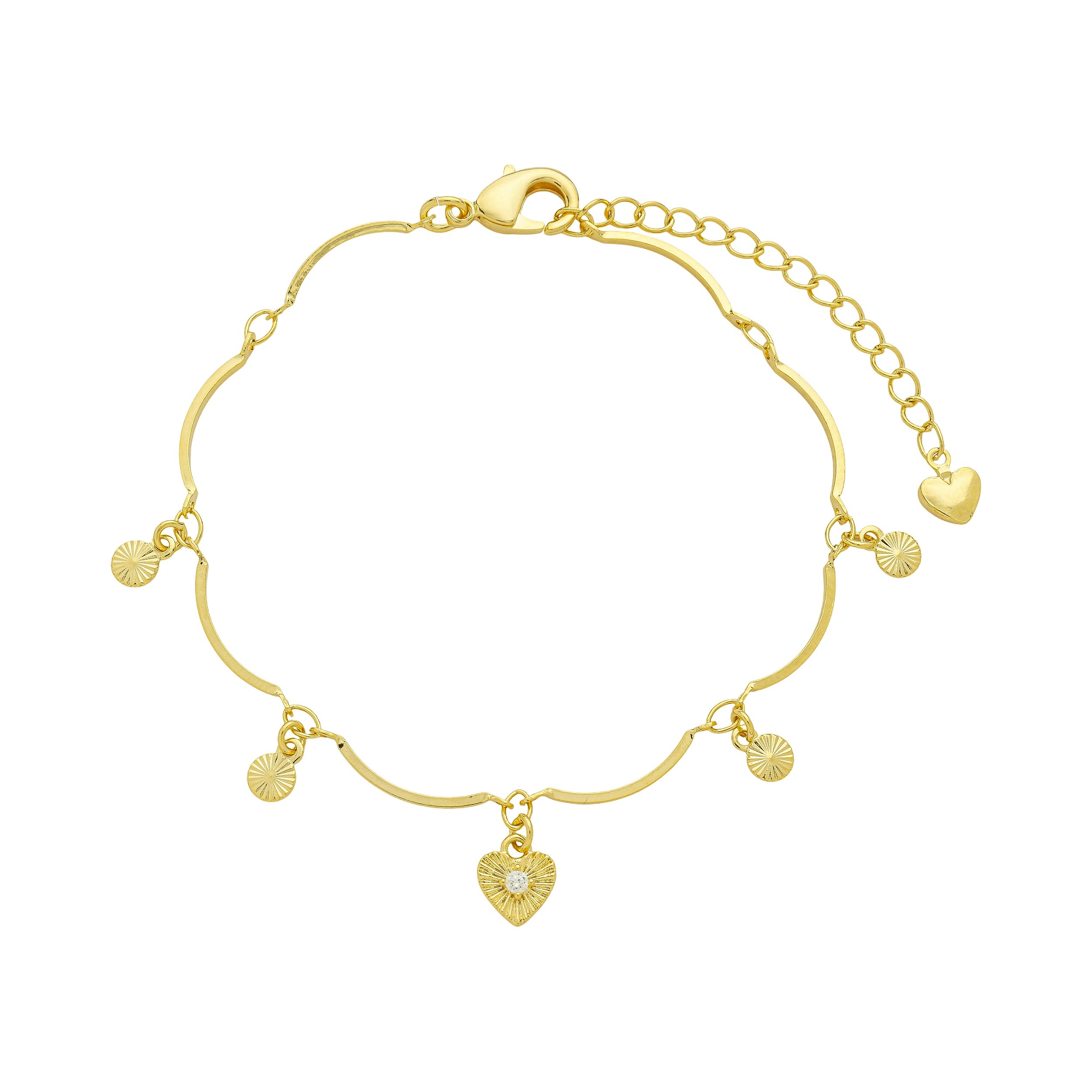 Pulseira Corações e Medalhas Banho de Ouro 18k