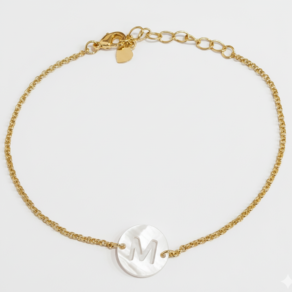 Uma peça cheia de significado. Esta pulseira apresenta uma charmosa corrente de elos delicados, resultando em um caimento leve e confortável. O grande destaque é o medalhão em Madrepérola, um material que confere um brilho suave e único a cada peça, com a inicial gravada. Um presente inesquecível ou uma semijoia pessoal para levar perto de você o que é mais importante.