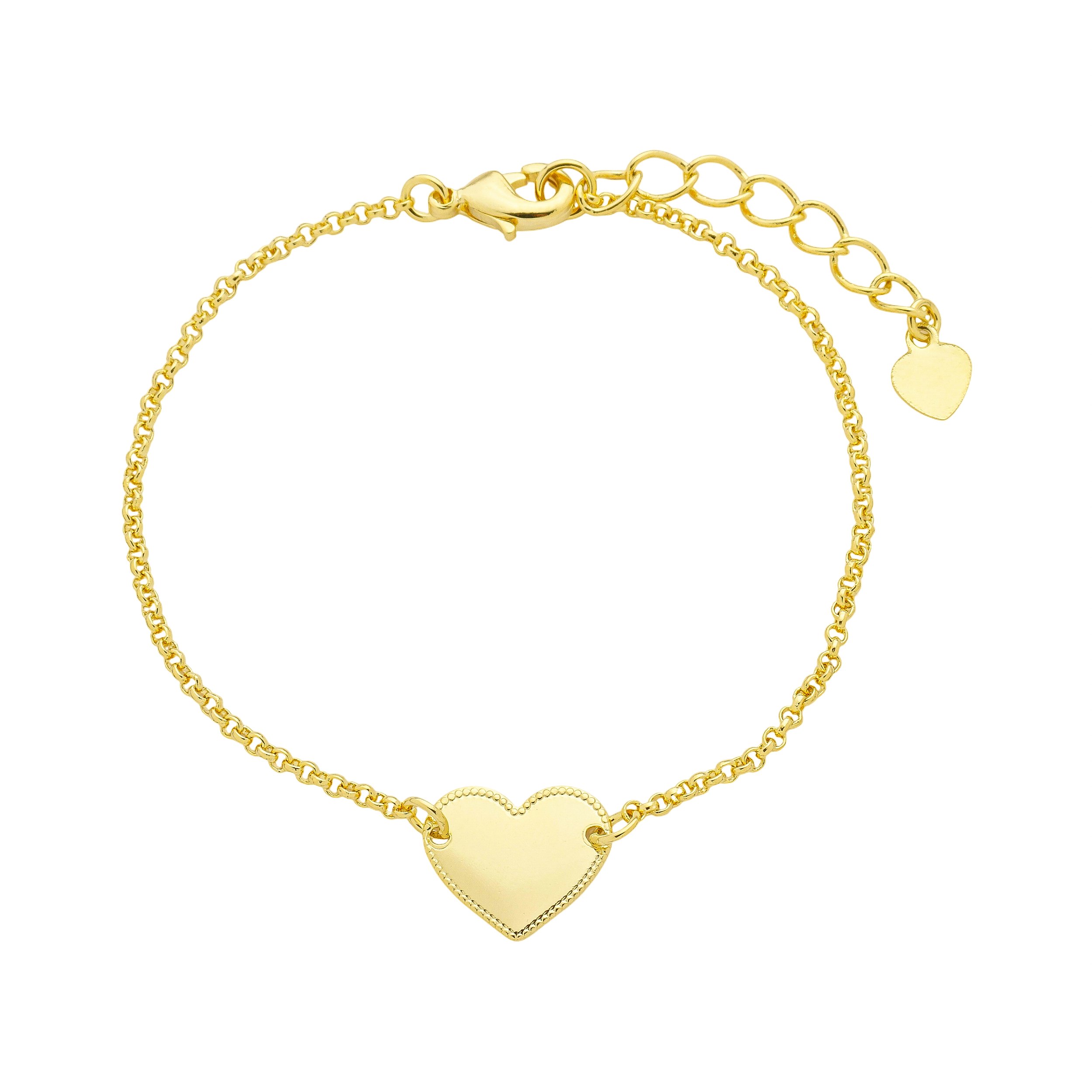 Pulseira corrente elos português com pingente de coração liso banho de Ouro 18k.