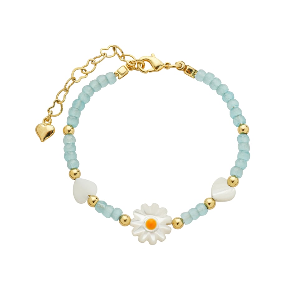 pulseira infantil, pulseira margarida, pulseira madrepérola, pulseira zircônias, banho de ouro 18k, semi-joia infantil, presente infantil, VQzinha, joia floral.