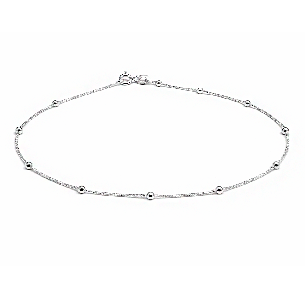 A Pulseira com Mini Esferas em Prata 925 é uma joia delicada e atemporal, perfeita para quem busca um acessório discreto e elegante. Seu design apresenta mini esferas polidas distribuídas ao longo da corrente, criando um visual leve, moderno e sofisticado.