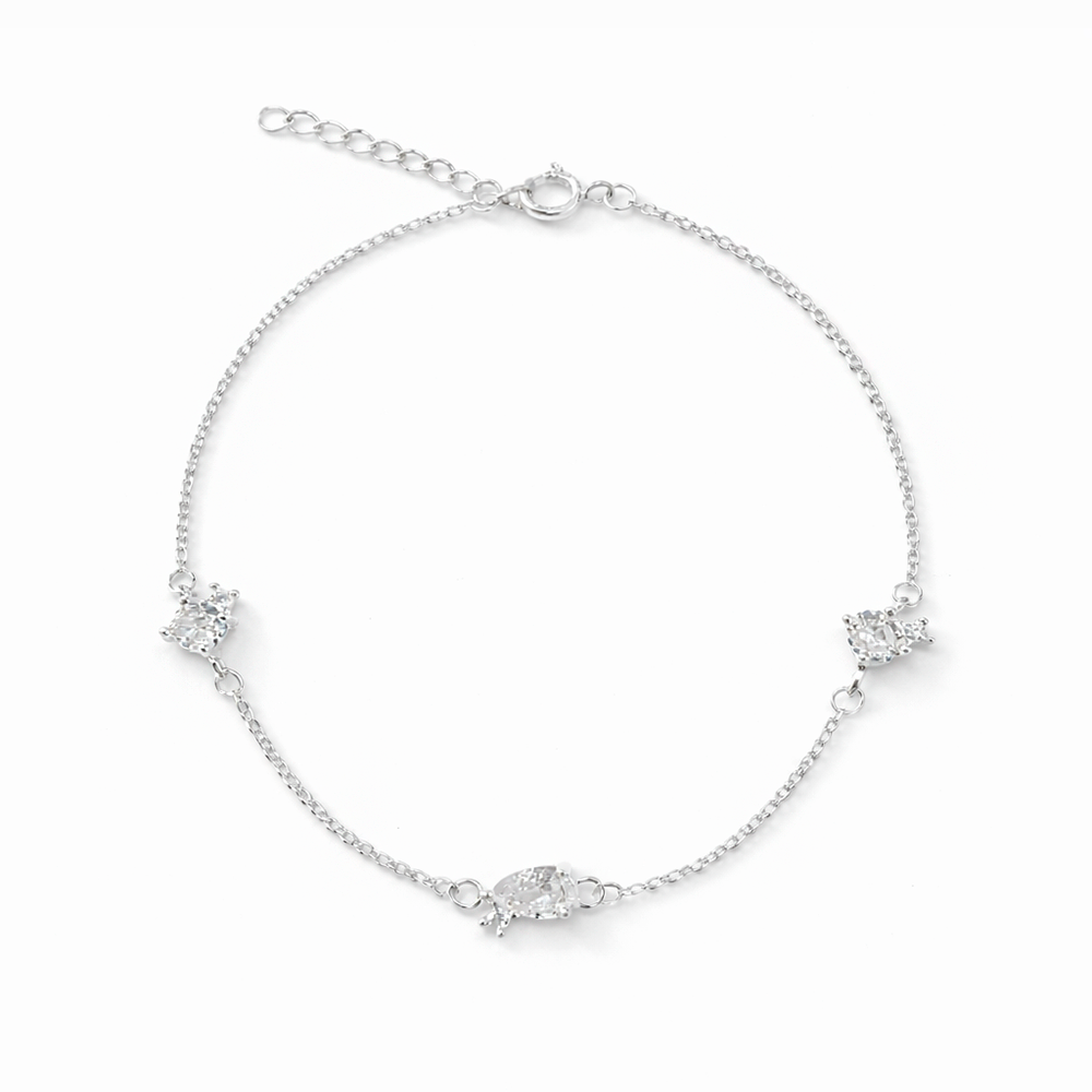 Pulseira Prata 925 com Zircônias Gota e Pontos de Luz