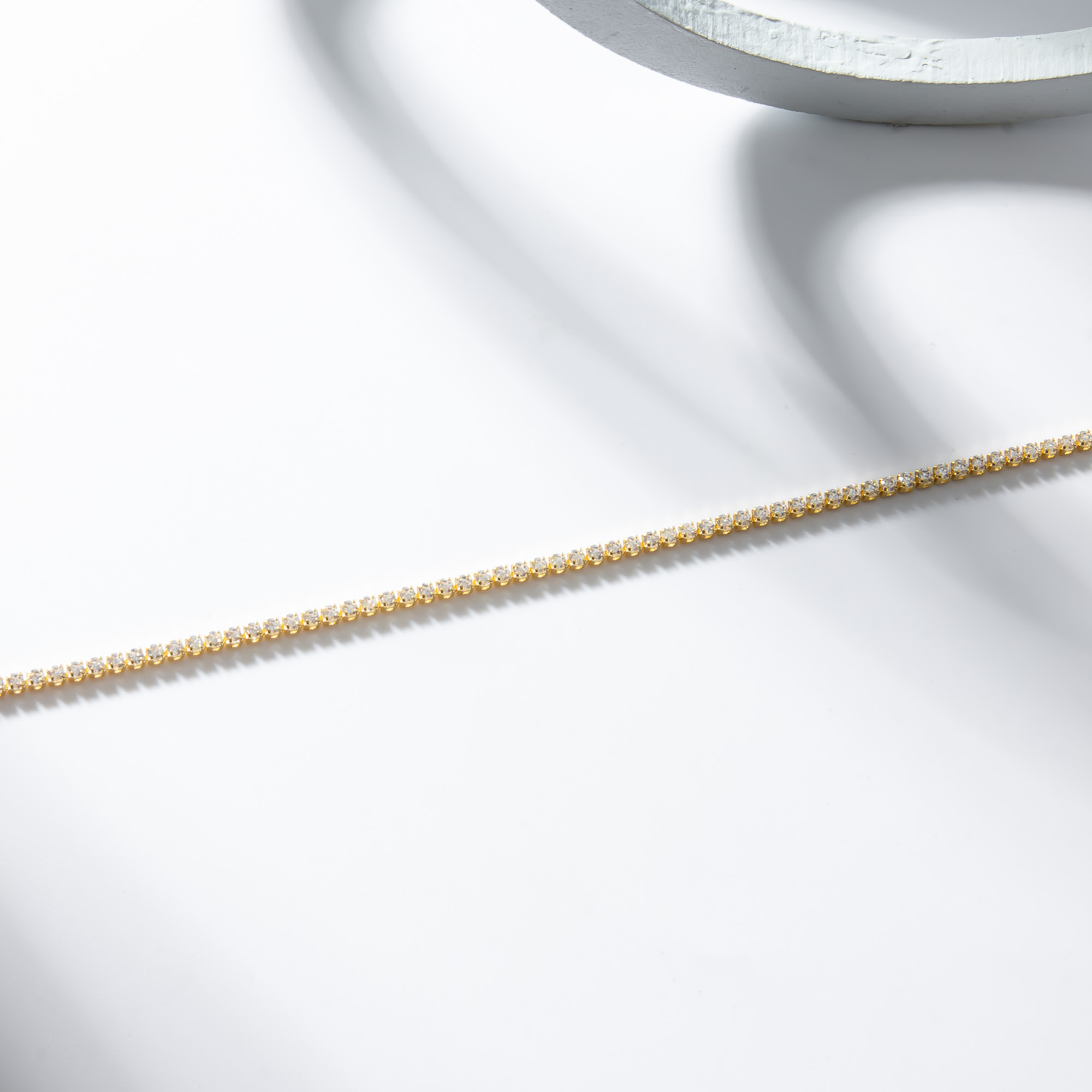 Pulseira Riviera Fina Zircônias Incolor Banho de Ouro 18k