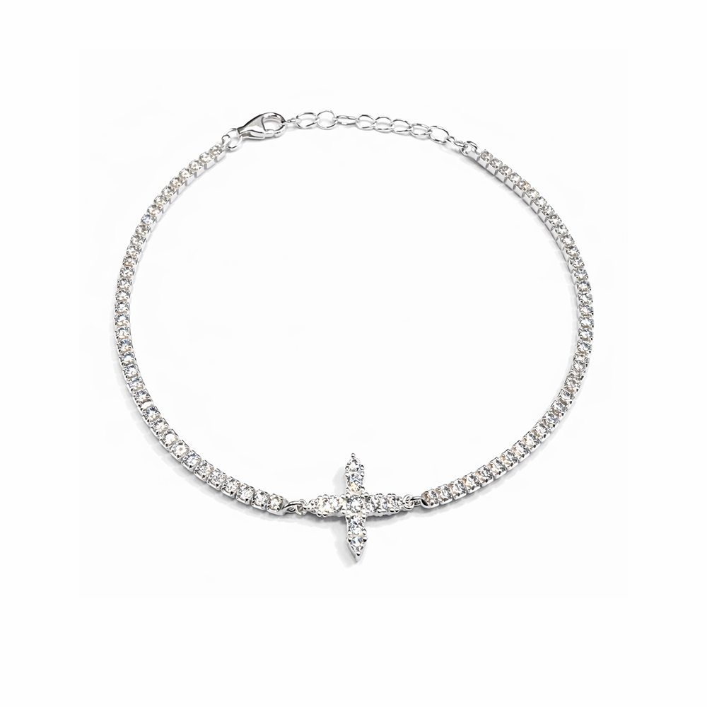 Pulseira Riviera Prata 925 com Cruz Cravejada em Zircônias Incolores
