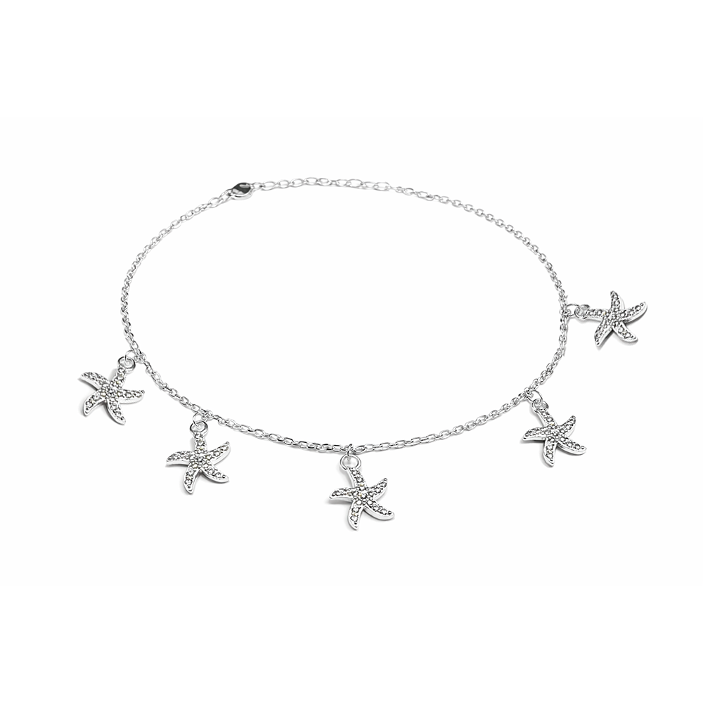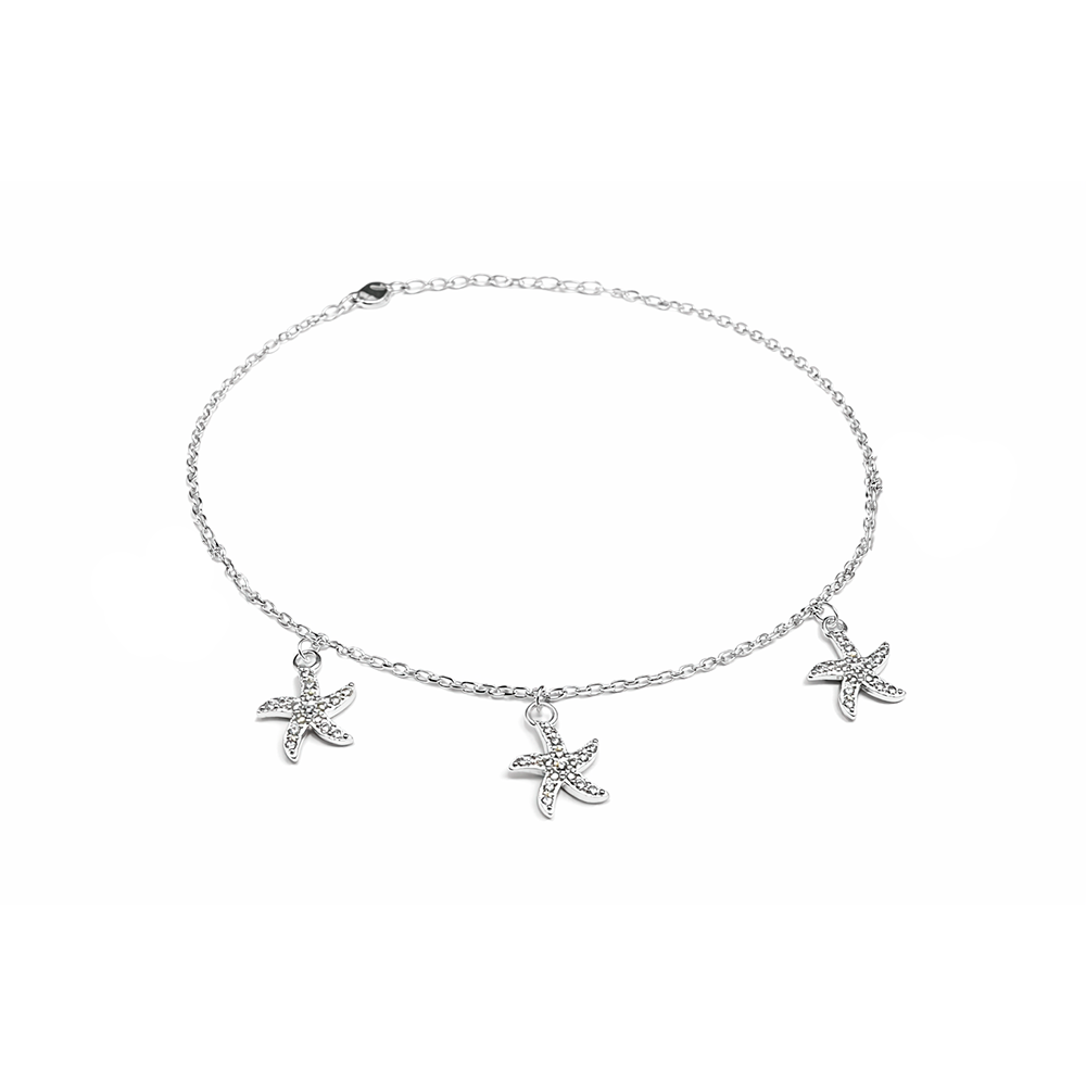 A Tornozeleira em Prata 925 com Pingentes de Estrela-do-Mar é uma joia sofisticada que traduz leveza, elegância e conexão com o universo praiano de forma refinada. Confeccionada em Prata 925 legítima, apresenta corrente delicada com acabamento polido e pingentes em formato de estrela-do-mar, cuidadosamente cravejados com zircônias, que garantem brilho sutil e harmonioso a cada movimento.