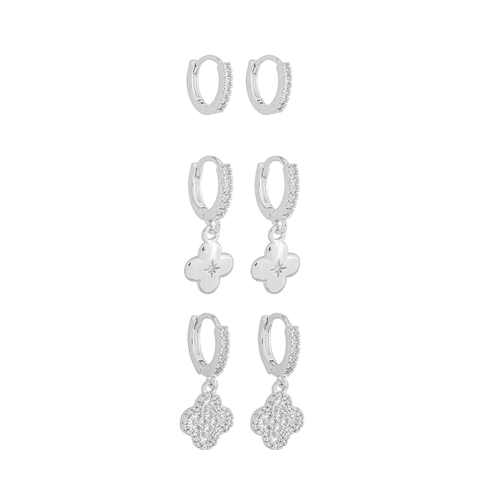 Trio de Argolas com Penduricalhos de Trevo no Banho de Ródio Branco